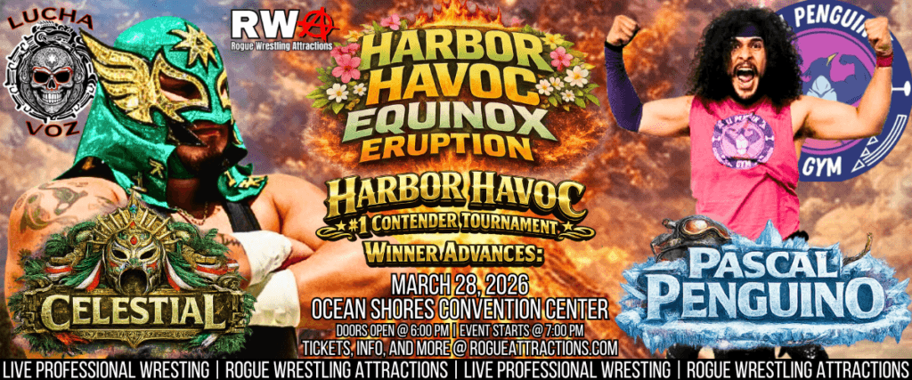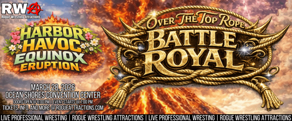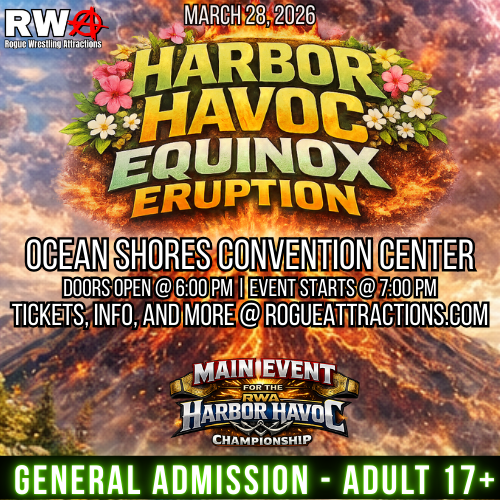 Thank you for your cooperation and support. Your respect for these policies allows us to deliver a high-energy, professional, and safe experience for all fans. We look forward to welcoming you to Harbor Havoc – Equinox Eruption on March 28, 2026, for an unforgettable night of Rogue Wrestling Attractions action.