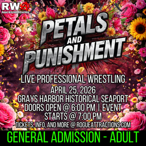 Petals & Punishment brings Rogue Wrestling Attractions back to the Grays Harbor Historical Seaport for a night built on contrast – beauty and brutality, precision and chaos, momentum and consequence.